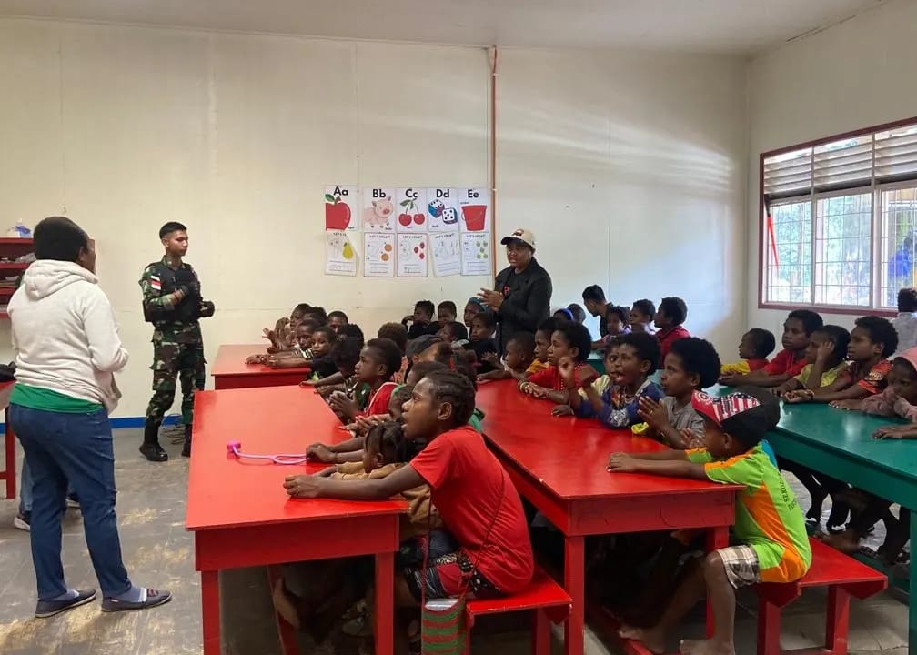 Mimika – Dansatgas Pam Obvitnas PT. Freeport Indonesia Yonif 116/Garda Samudra, Mayor Inf Novi Widyanto S.E., dalam rilis tertulisnya yang disampaikan Pen Satgas Pam Obvitnas PT. Freeport Indoenesia Yonif 116/Garda Samudra, di Kabupaten Mimika, Papua, Kamis (14/03/2024), menyebut “Prajurit Satgas Pam Obvitnas PT. Freeport Indonesia Yonif 116/Garda Samudra menjadi tenaga pendidik (gadik) di SD Banti Distrik Tembagapura, Kabupaten Mimika, Papua”.