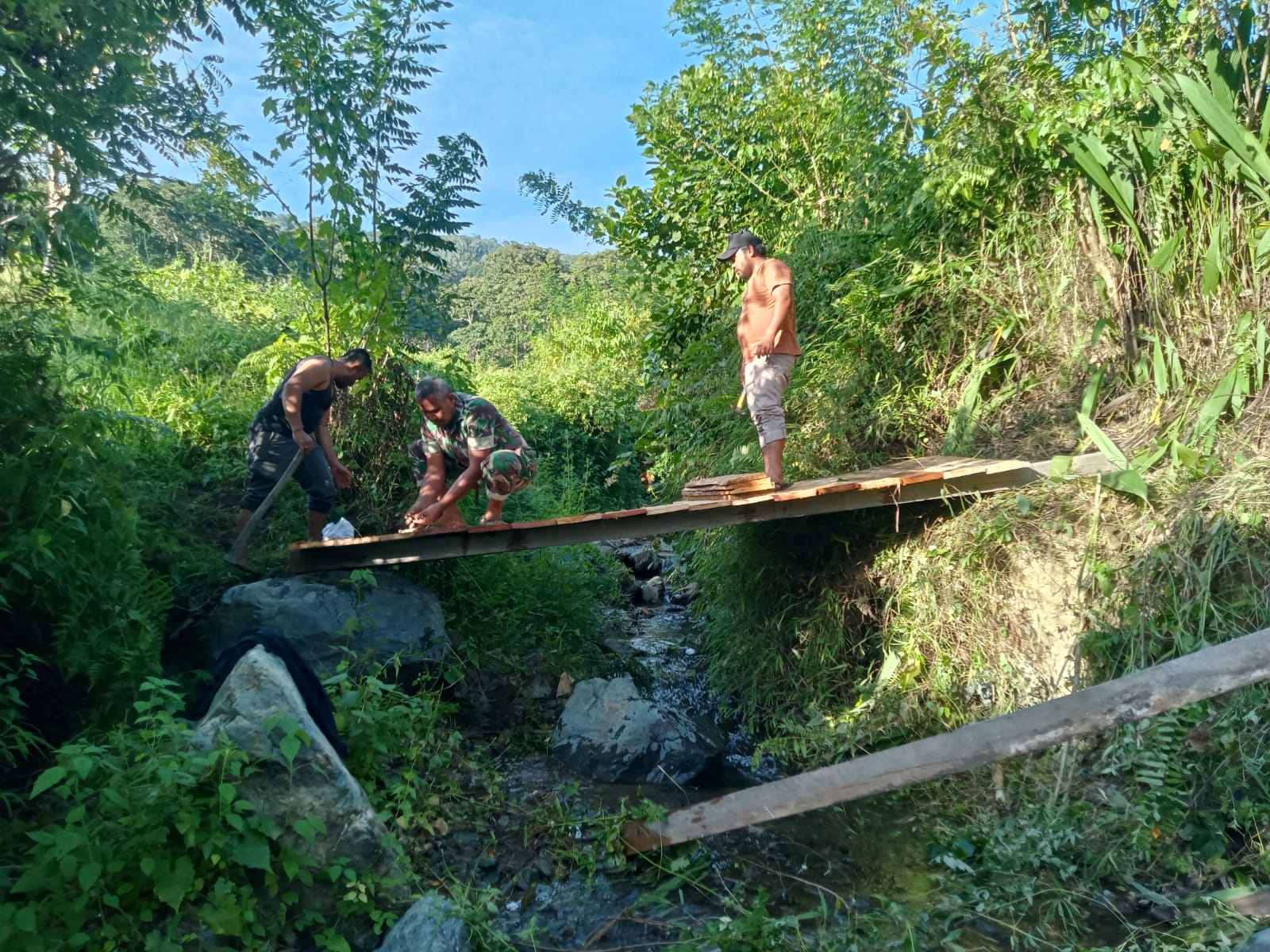 Babinsa Serda Muhajir Pamuji pada kegiatan tersebut mengatakan, apa yang dilakukannya bersama warga adalah untuk membangun jembatan yang akan memudahkan akses warga menuju ladang kebunnya dan mempermudah dalam pengangkutan hasil panen kebun menuju ke Desa.