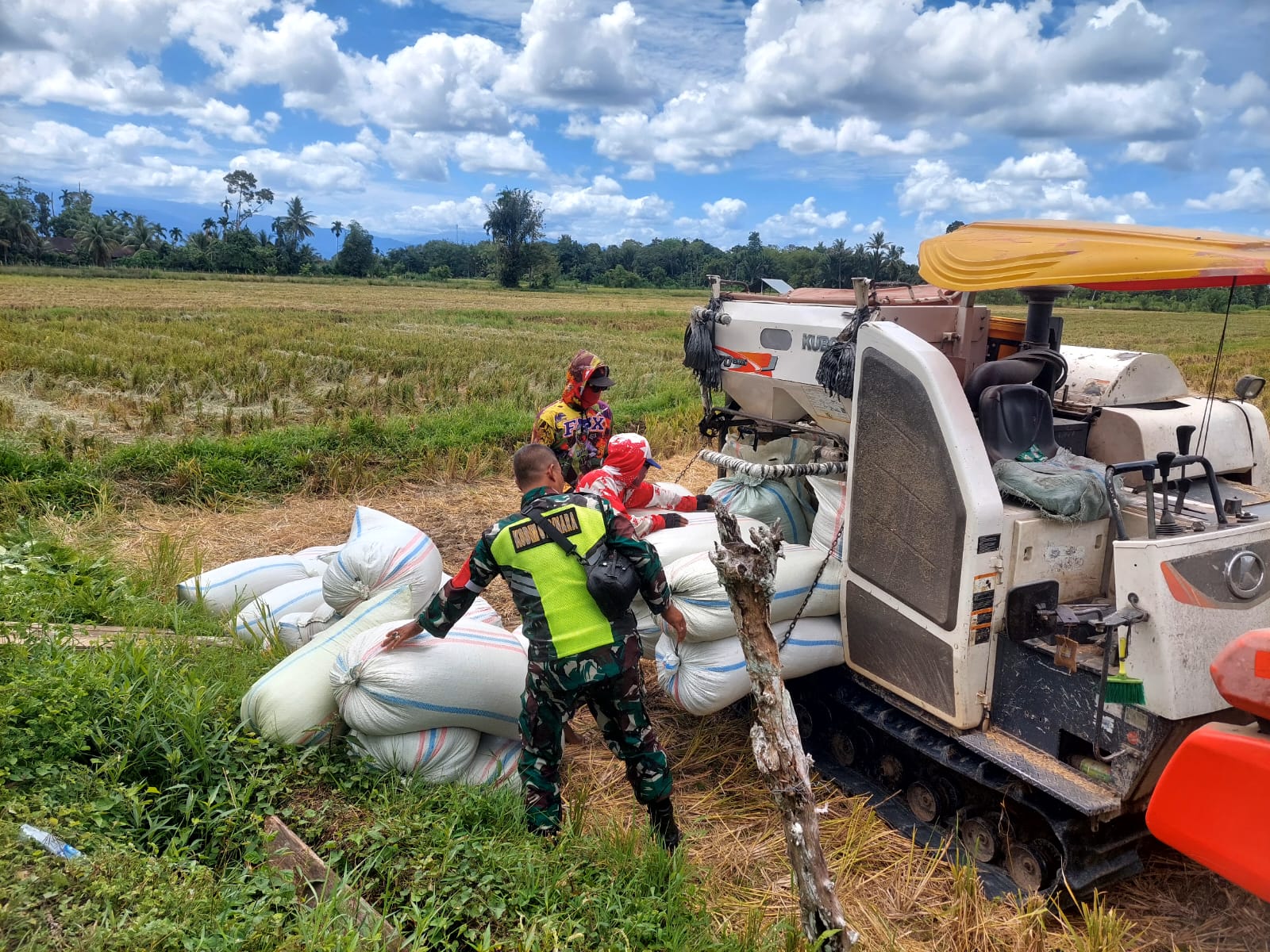 Nagan Raya** – Dalam upaya mendukung program ketahanan pangan nasional, Babinsa Koramil 03/Senagan Timur, Kodim 0116/Nagan Raya, di bawah jajaran Korem 012/Teuku Umar, Serka Heriyanto, melaksanakan pendampingan panen padi menggunakan alat modern berupa traktor pemanen padi (Combine Harvester), Sabtu (11/10/2025).