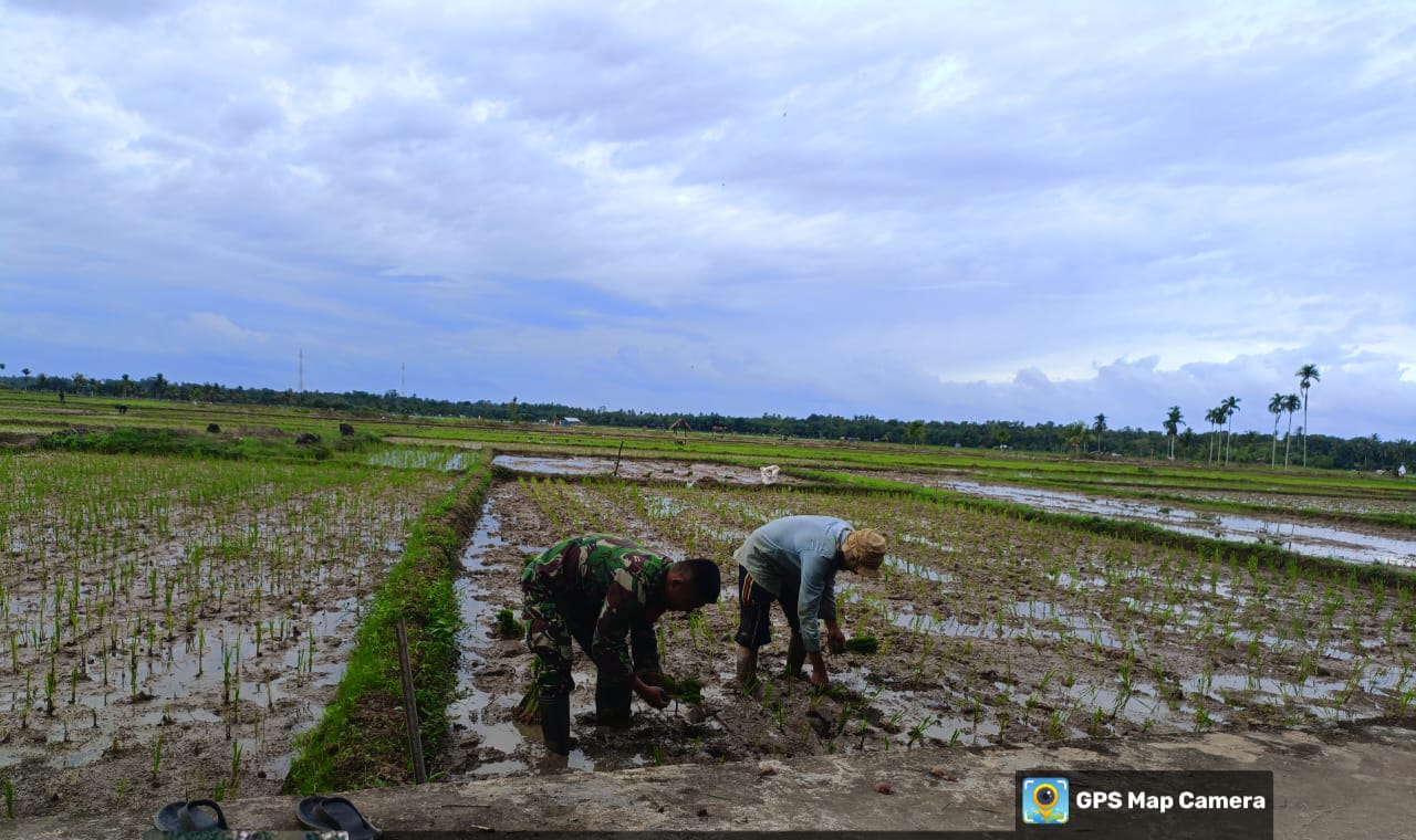 Babinsa Koramil 14/Pasi Raja Bantu Petani Tanam Padi, Dorong Percepatan Masa Tanam