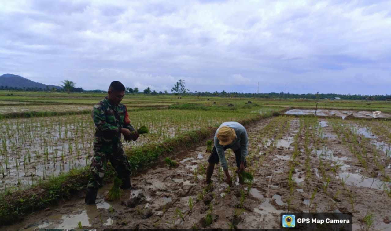 Babinsa Koramil 14/Pasi Raja Bantu Petani Tanam Padi, Dorong Percepatan Masa Tanam