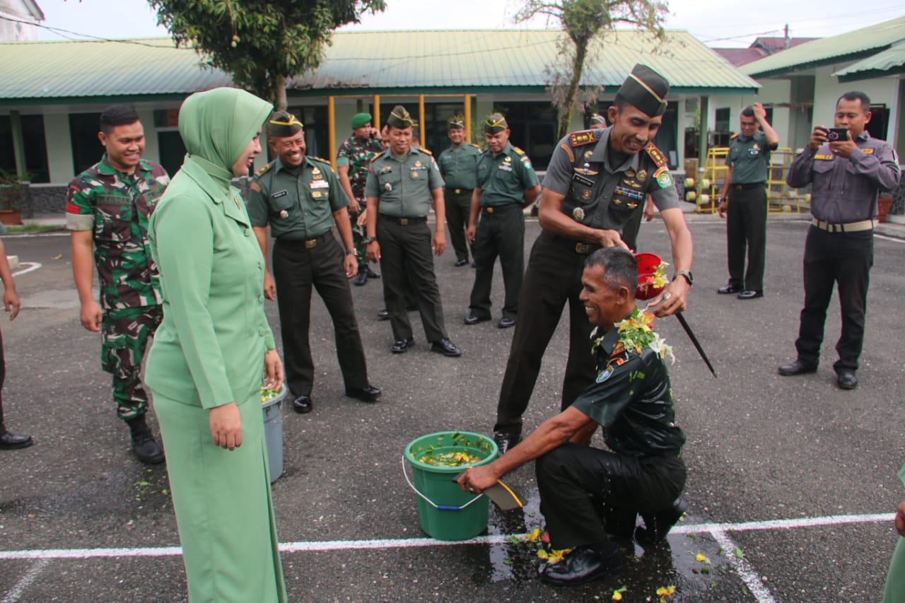 Usai memberikan amanat, Dandim melanjutkan acara tradisi Siraman Air Kembang kepada seluruh Prajurit yang naik Pangkat seraya memberikan ucapan selamat yang disertai untaian do’a – do’a.
