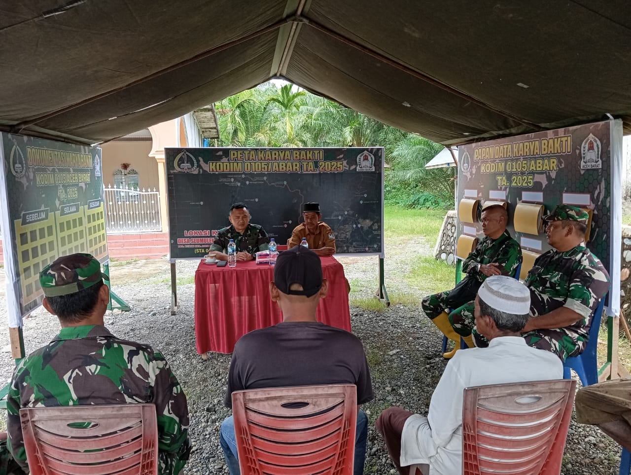 Aceh Barat – Dandim 0105/Abar Letkol Inf Hendra Mirza, S.E., M.Si., didampingi Pasi Ops Kapten Inf Andika Trio Utama, S.H., serta Danposramil 06/Bubon Peltu Rodi Syahputra meninjau langsung secara nyata pelaksanaan Karya Bhakti di wilayah Kodim 0105/Abar tepatnya di Desa Seumuling Kecamatan Bubon, Rabu (16/7/2025)
