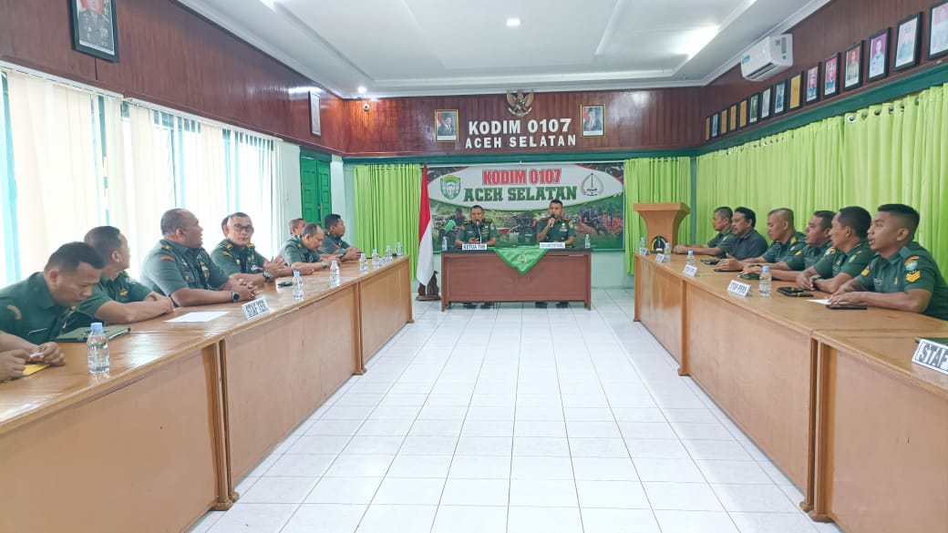 ACEH SELATAN – Komandan Kodim 0107/Aceh Selatan Letkol Inf Faiq Fahmi menyambut hangat kedatangan Tim Audit Kinerja dari Inspektorat Kodam (Itdam) Iskandar Muda di Makodim Aceh Selatan, Rabu (6/8/2025).