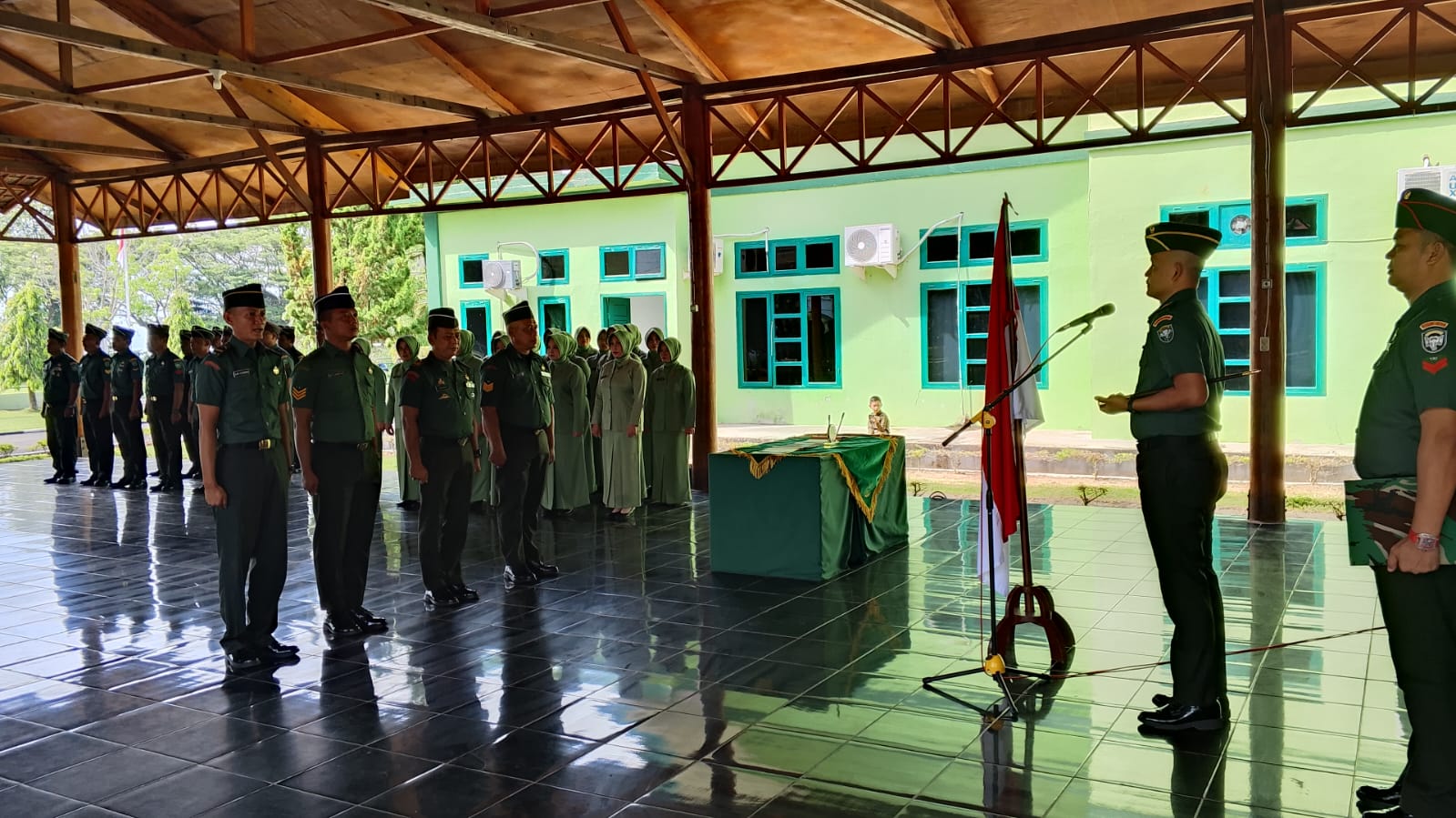 ACEH JAYA – Dandim 0114/Aceh Jaya Letkol Inf Alimudin, S.E., Pimpin Acara tradisi Wisuda Purna tugas Peltu T.Adlin diarsa dan Serma Nasri serta pelepasan Letda Inf Alfin Alfiansyah ke Kodam I/BB. Dan Serka Ari Fajdiansyah Ke Sansi Dam IM Prosesi acara tradisi digelar di Joglo Makodim setempat, Desa Bahagia , Kecamatan Krueng Sabee,Rabu (30/07/2025)