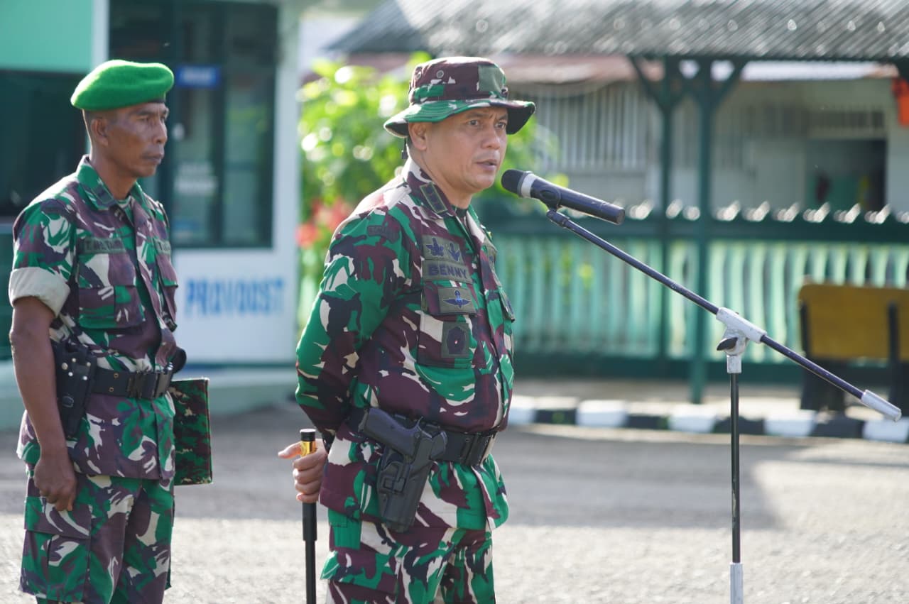 Aceh Selatan – Komandan Korem 012/Teuku Umar, Kolonel Inf Benny Rahadian S.E,. M.Han ,memimpin langsung apel pagi dalam rangkaian Latihan Posko-I di Markas Kodim 0107/Aceh Selatan, Selasa (16/9/25).
