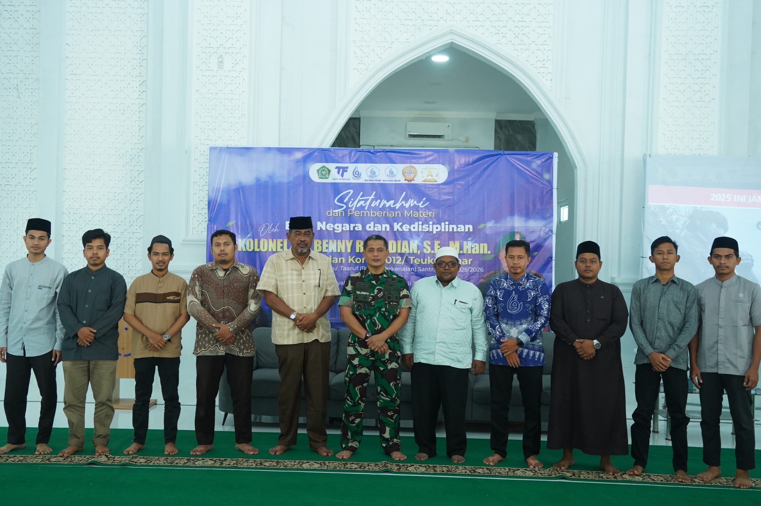 Aceh Barat, Sabtu (19/07/2025) — Komandan Korem 012/Teuku Umar, Kolonel Inf Benny Rahadian, S.E., M.Han., memberikan pembekalan kepemimpinan dan bela negara kepada ratusan santriwan dan santriwati Dayah Ruhul Qur’ani.