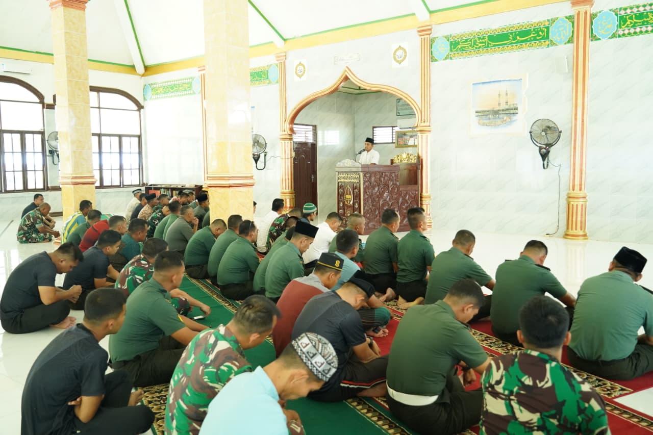 Pada kesempatan tersebut Kasdam IM Melaksanakan Sholat Duhur berjamaah Di Masjid Al- Ikhlas dengan Para prajurit Korem 012/TU dilanjutkan dengan mendengarkan Kultum oleh Prajurit Korem 012/TU yang rutin dilaksanakan secara bergantian setiap Sholat Duhur.