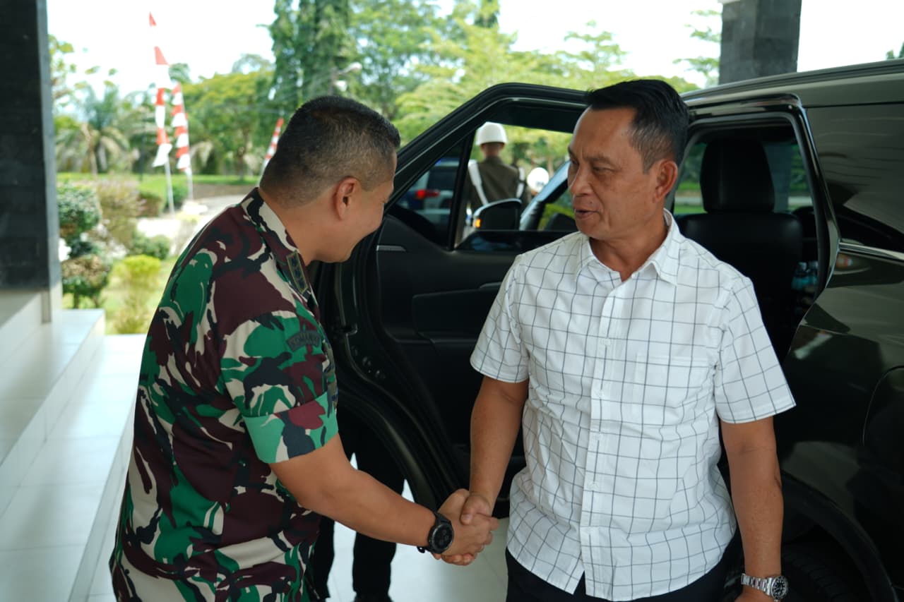 Aceh Barat- Komandan Korem 012/Teuku Umar Kolonel Inf Benny Rahadian S.H., M.Han., didampingi Ketua Persit Kartika Chandra Kirana Koorcab Rem 012 PD Iskandar Muda Ny. Rina Benny Rahadian Menyambut kedatangan Kepala Staf Kodam IM Brigjen TNI Ayi Supriatna, S.I.P., M.M., beserta rombongan di makorem 012/TU.