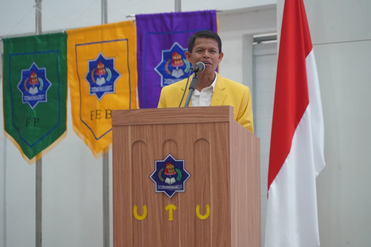 Rektor UTU, Prof. Dr. Ishak Hasan, M.s.i, dalam sambutannya mengapresiasi Danrem 012/TU yang telah meluangkan waktu untuk memberikan pencerahan kepada mahasiswa.