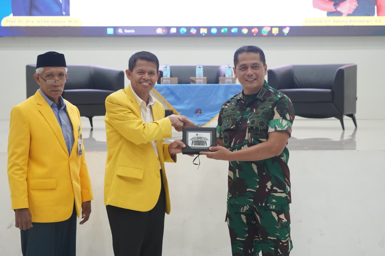 Rektor UTU, Prof. Dr. Ishak Hasan, M.s.i, dalam sambutannya mengapresiasi Danrem 012/TU yang telah meluangkan waktu untuk memberikan pencerahan kepada mahasiswa.