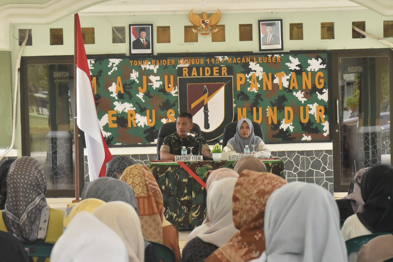 Dalam sambutannya, Danyonif 115/ML Letkol Inf Adi Nofriadi Nata, Satuan memberikan suatu bentuk partisipasi kepada ibu persit Cabang XXXVIII ini adalah upaya bentuk dari satuan Yonif 115/ML berupa Bantuan yang diserahkan seperti alat olahraga (bola voli), printer, laptop, timbangan berat badan, serta paket sembako untuk mendukung aktivitas dan kesejahteraan para ibu Persit