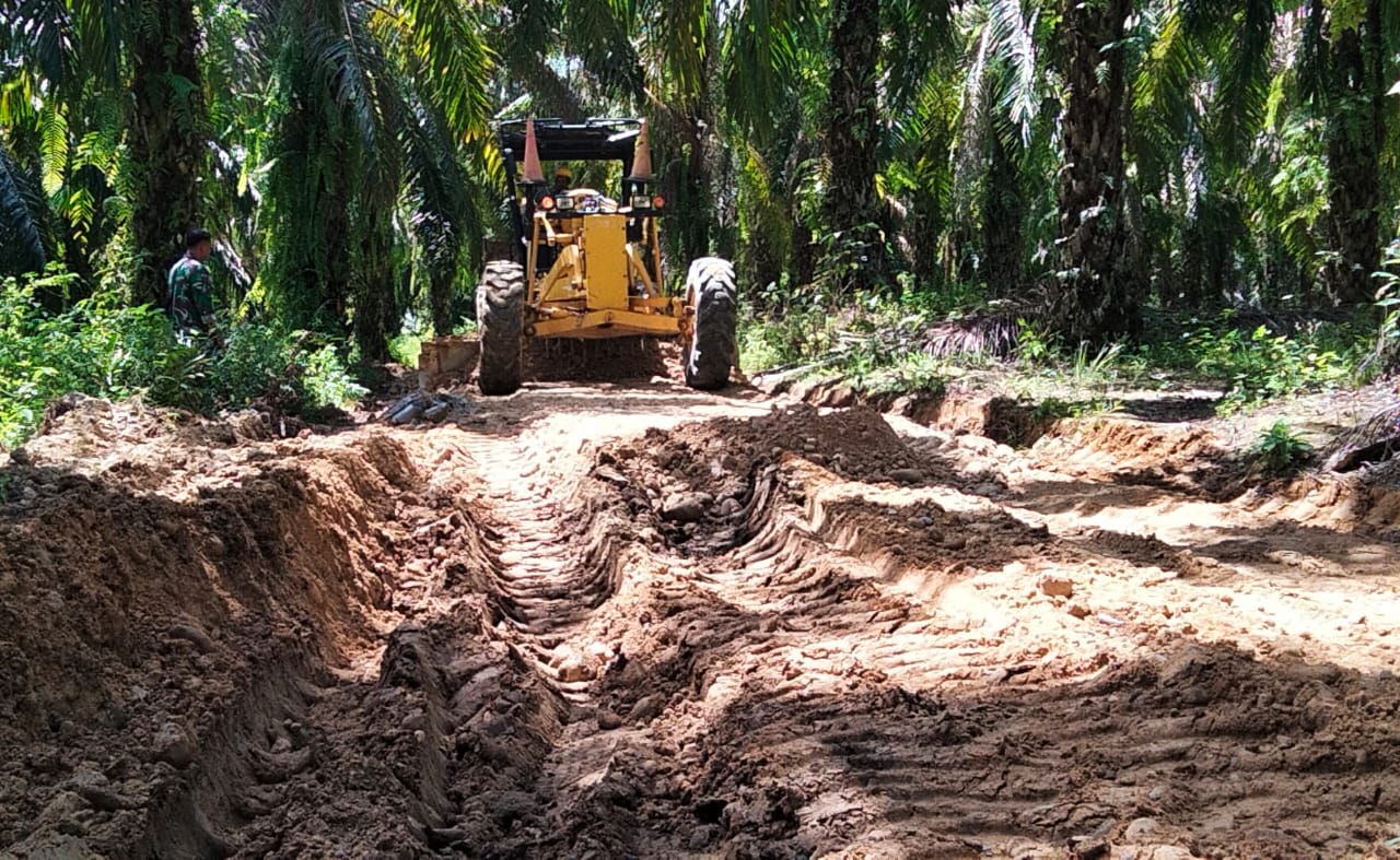 Suara alat berat berpadu dengan semangat gotong royong antara prajurit dan warga. Tanah ditimbun, jalan diratakan, satu per satu hambatan disingkirkan demi terwujudnya akses penghubung antar desa yang selama ini dinanti. Penimbunan badan jalan menjadi tahap penting menuju jalan yang kokoh dan layak dilalui kendaraan, bahkan saat hujan deras mengguyur.