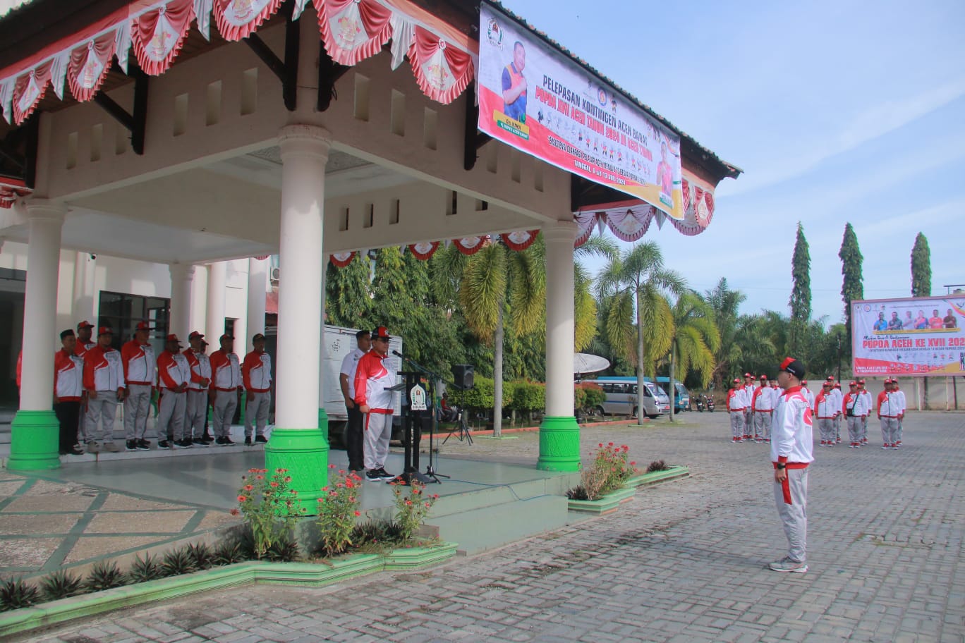 Pada saat Upacara Pelepasan, Pj. Bupati Aceh Barat Drs. Mahdi Efendi dalam sambutannya mengucapkan selamat kepada seluruh atlet yang telah terpilih untuk mewakili Kabupaten Aceh Barat pada ajang Popda Aceh ke – 17 yang digelar di Aceh Timur.