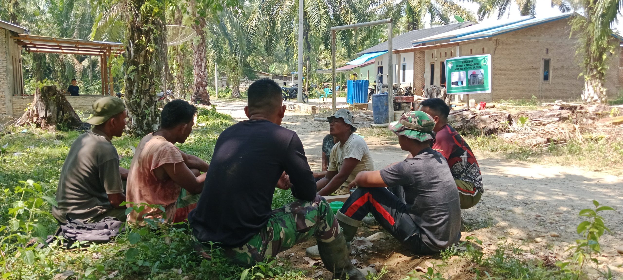 SUBULUSSALAM – Suasana kebersamaan dan kekeluargaan tampak begitu erat antara personel Satgas TMMD Reguler ke-125 Kodim 0118/Subulussalam dan warga Desa Tangga Besi, Kecamatan Simpang Kiri, Kota Subulussalam, Aceh, Minggu(27/7/2025). Setelah melaksanakan kegiatan fisik berupa pembuatan tandon air, mereka duduk bersama di bawah rindangnya pohon sawit untuk beristirahat dan menikmati minuman pelepas dahaga.