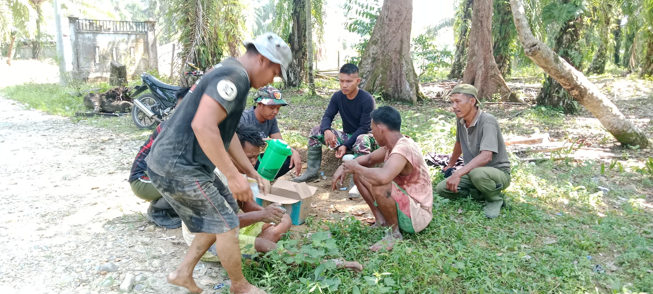 SUBULUSSALAM – Suasana kebersamaan dan kekeluargaan tampak begitu erat antara personel Satgas TMMD Reguler ke-125 Kodim 0118/Subulussalam dan warga Desa Tangga Besi, Kecamatan Simpang Kiri, Kota Subulussalam, Aceh, Minggu(27/7/2025). Setelah melaksanakan kegiatan fisik berupa pembuatan tandon air, mereka duduk bersama di bawah rindangnya pohon sawit untuk beristirahat dan menikmati minuman pelepas dahaga.