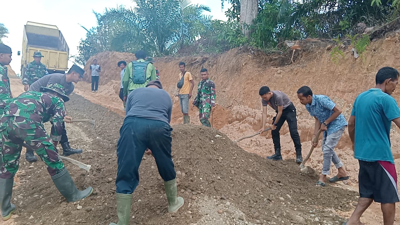 Tiada hari tanpa mengabdi untuk masyarakat, inilah kalimat yang tertanam dalam jiwa raga para Tim Satgas TMMD. Sehingga, Tim Satgas TMMD dalam menjalankan tugasnya tidak ada kata tanggal merah atau hari libur. Kondisi ini memang tidak terbantahkan, fakta di lapangan, kendati tanggal merah, para Tim Satgas tetap beraktivitas menggarap sasaran fisik pembuatan Jalan yang saat ini memasuki tahap penebangan pepohonan dan serah Kerikil.