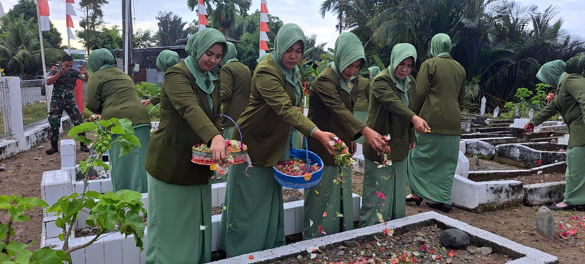 Ketua Persit KCK Cabang XXVIII Kodim 0105/Abar Dampingi Ketua Persit KCK Koorcabrem 012/TU Upacara Dan Tabur Bunga Di TMP