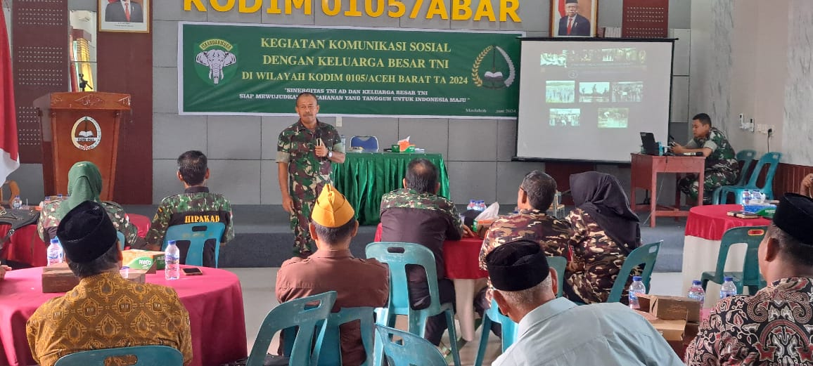Aceh Barat – Dandim 0105/Abar Letkol Inf Hendra Mirza, S.E., M.Si., yang diwakili Kasdim Mayor Inf Mazwar As’adi Riyanto membuka kegiatan Pembinaan dan Pemberdayaan organisasi Keluarga Besar TNI (KBT) yang digelar di Aula Makodim setempat berlokasi di Jalan Imam Bonjol Desa Drien Rampak Kecamatan Johan Pahlawan, Jum’at (21/6/2024)