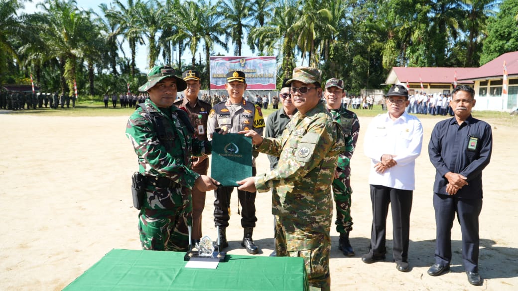 Upacara pembukaan TMMD di wilayah Kodim 0109/Aceh Singkil berlangsung di Desa Siompin, Kecamatan Suro, Kabupaten Aceh Singkil, dengan Bupati H. Syafriadi Oyon, S.H. bertindak sebagai Inspektur Upacara. Acara turut dihadiri oleh Asintel Kasdam IM Kolonel Inf Haris Sukarman, S.E., Dandim 0109/Aceh Singkil, unsur Forkopimda, dan masyarakat setempat.