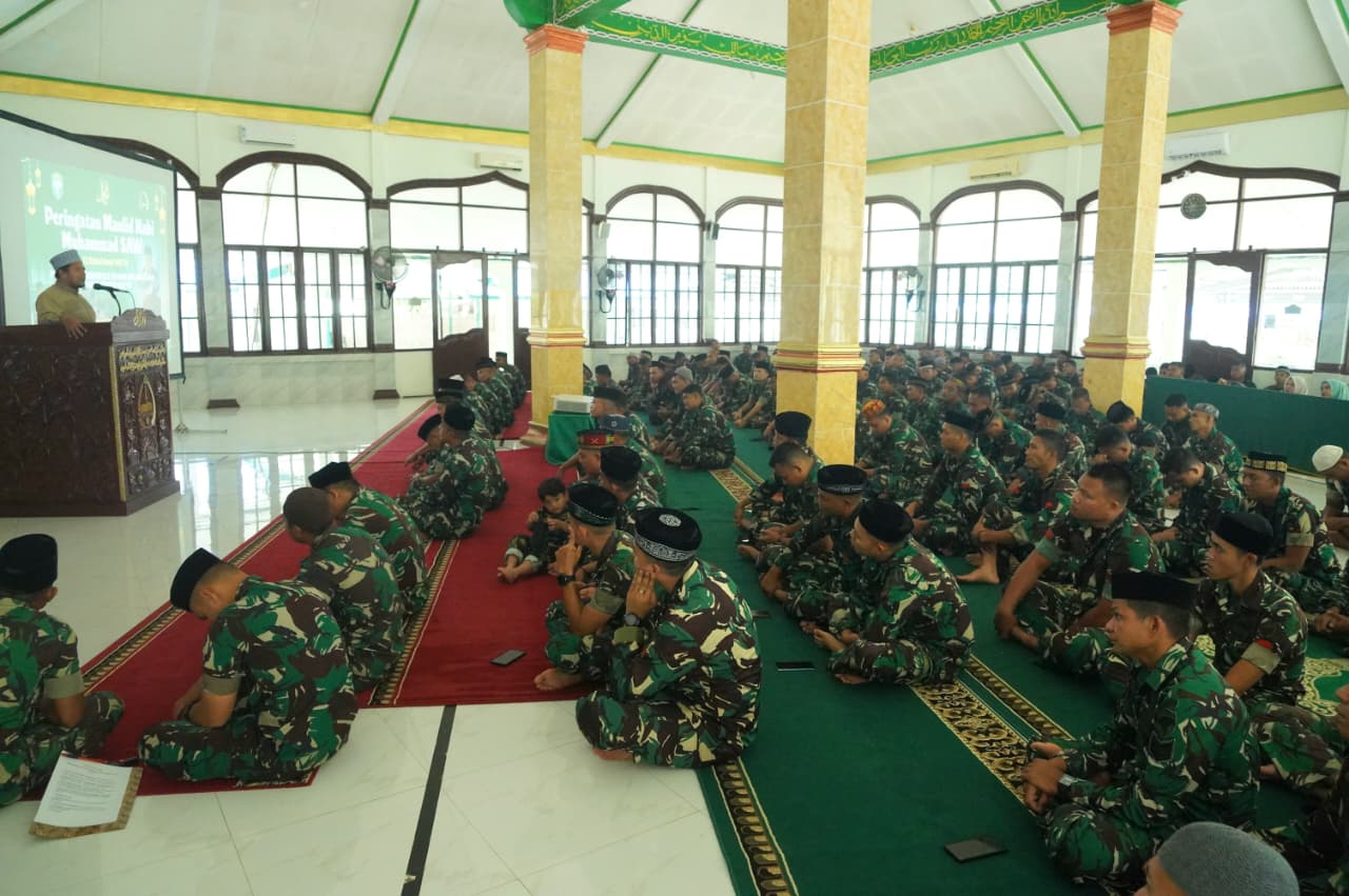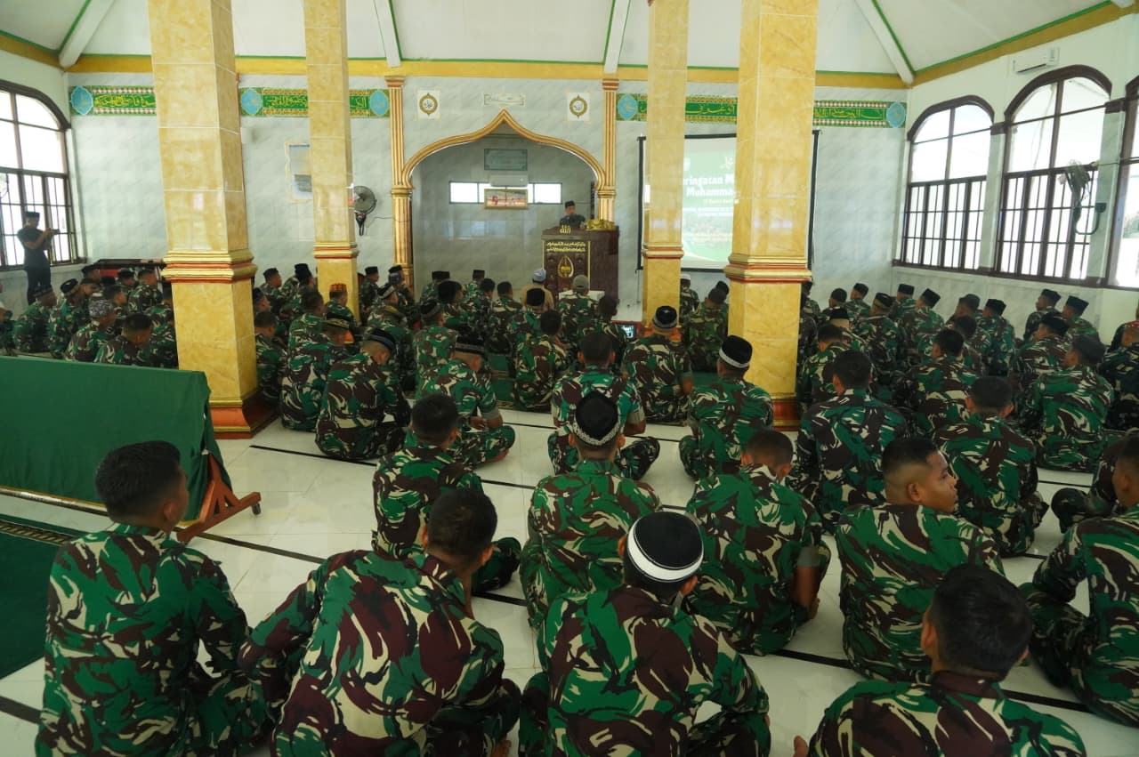 Dalam sambutannya, Kolonel Inf Benny Rahadian menyampaikan pentingnya mencintai serta meneladani akhlak Rasulullah SAW dalam kehidupan sehari-hari, khususnya bagi prajurit TNI.