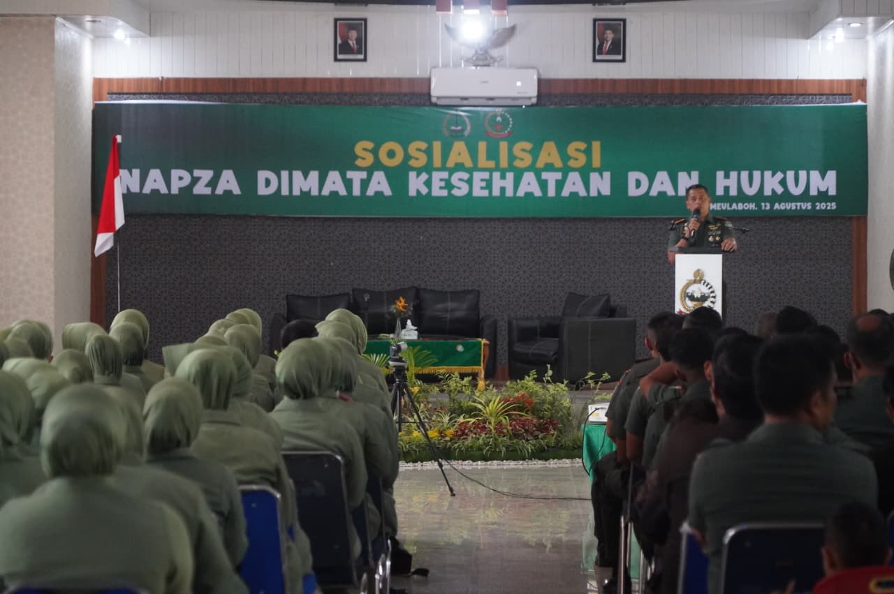 Aceh Barat- korem 012/TU menggelar sosialisasi narkotika, psikotropika, bahan adiktif dan Alkohol (NAPZA) dimata Kesehatan dan hukum kepada Prajurit dan PNS TNI Korem 012/TU, bertempat di aula bhaktigara Makorem 012/TU, Rabu 13/08/2025.