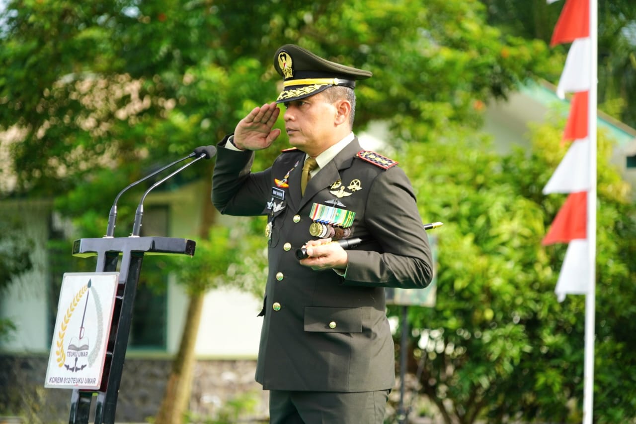 Upacara Dipimpin langsung oleh Danrem 012/TU Kolonel Inf Benny Rahadian, S.E.,M. Han., sebagai Irup dan bertindak sebagai Komandan Upacara Lettu Inf Suna’im.
