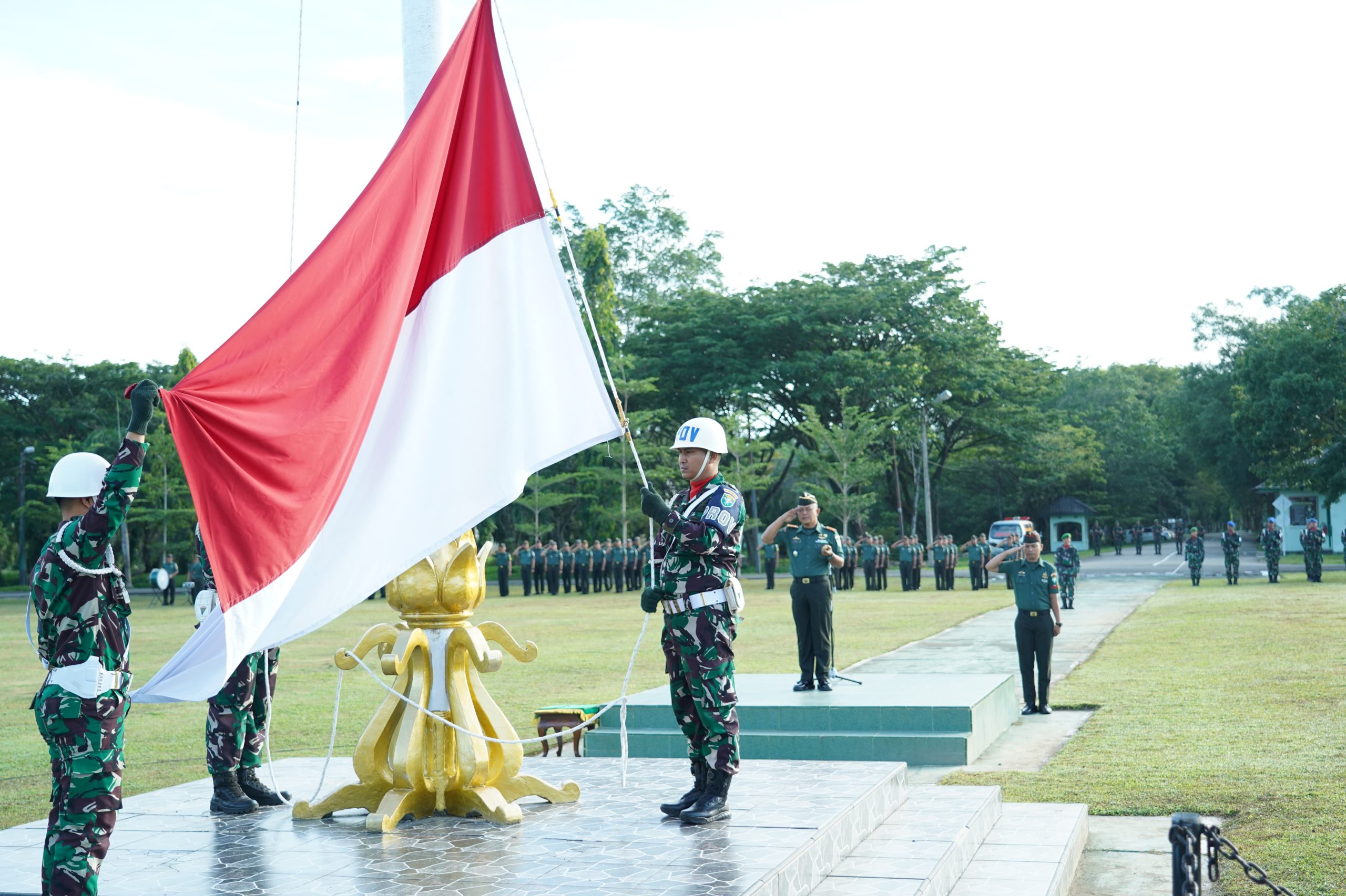 Upacara berlangsung dengan khidmat dan penuh semangat nasionalisme, diawali dengan pengibaran bendera Merah Putih yang diiringi lagu kebangsaan Indonesia Raya. Dalam rangkaian upacara tersebut, turut dilaksanakan pula pembacaan Pembukaan UUD 1945, pengucapan Sapta Marga, Sumpah Prajurit, 8 Wajib TNI, serta pembacaan Panca Prasetya Korps Pegawai Republik Indonesia (KORPRI) yang menjadi bagian penting dalam membangun karakter dan integritas seluruh peserta upacara.