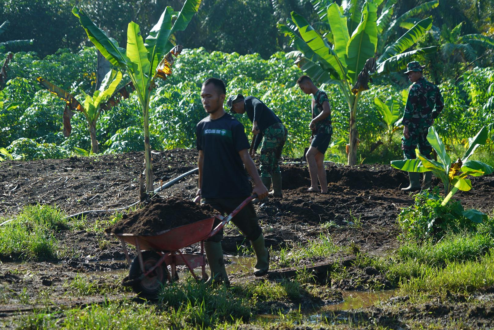 Aceh Barat, Korem 012/Teuku Umar terus memaksimalkan pengelolaan lahan ketahanan pangan seluas lebih kurang 40 hektare yang dikelola secara terpadu meliputi sektor pertanian, peternakan, dan perikanan. Salah satu inovasi yang dikembangkan adalah pemanfaatan limbah padat hasil pengolahan tandan buah segar kelapa sawit, yang dikenal sebagai solid sawit, sebagai pupuk organik.