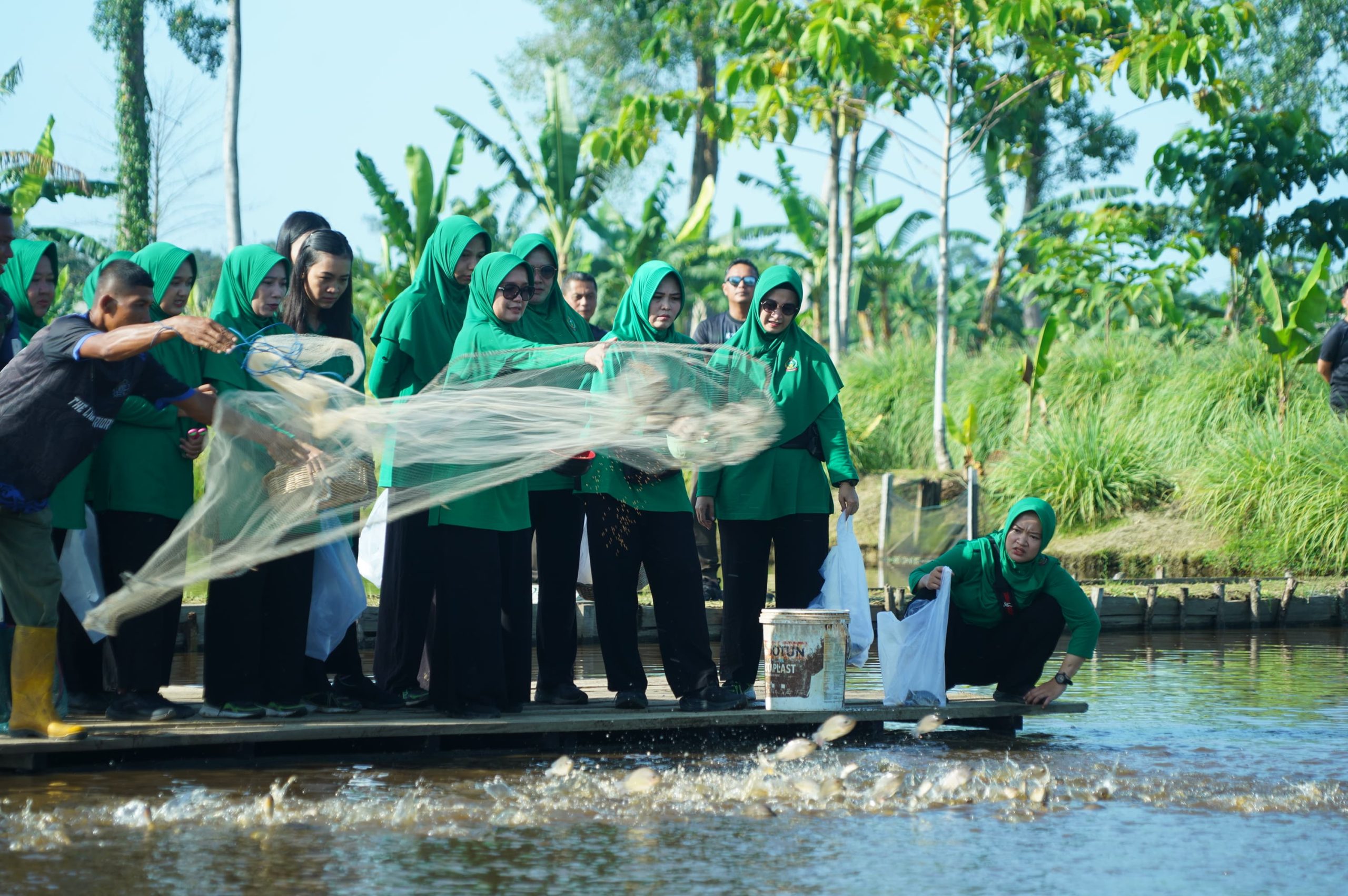 Dengan suasana pagi yang cerah dan penuh kehangatan, bersama Persit KCK Koorcabrem 012 turun langsung ke lahan untuk memanen hasil kebun hortikultura seperti terong, timun, gambas, sawi, dan pare. Di sektor perikanan, turut dilakukan pemanenan ikan nila yang telah dibudidayakan.