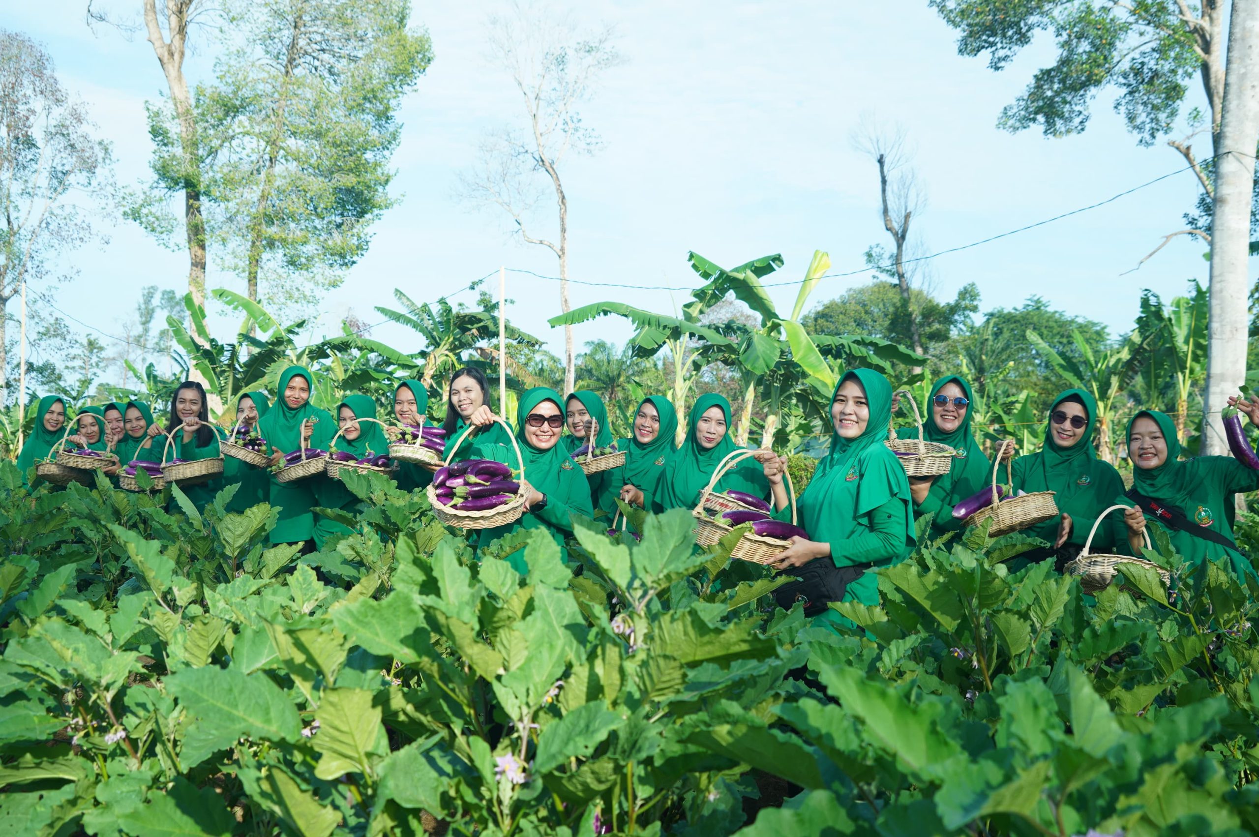Antusiasme terpancar dari seluruh peserta kegiatan, khususnya ibu-ibu Persit yang tampak semangat dan bahagia saat memanen langsung hasil kerja keras bersama.