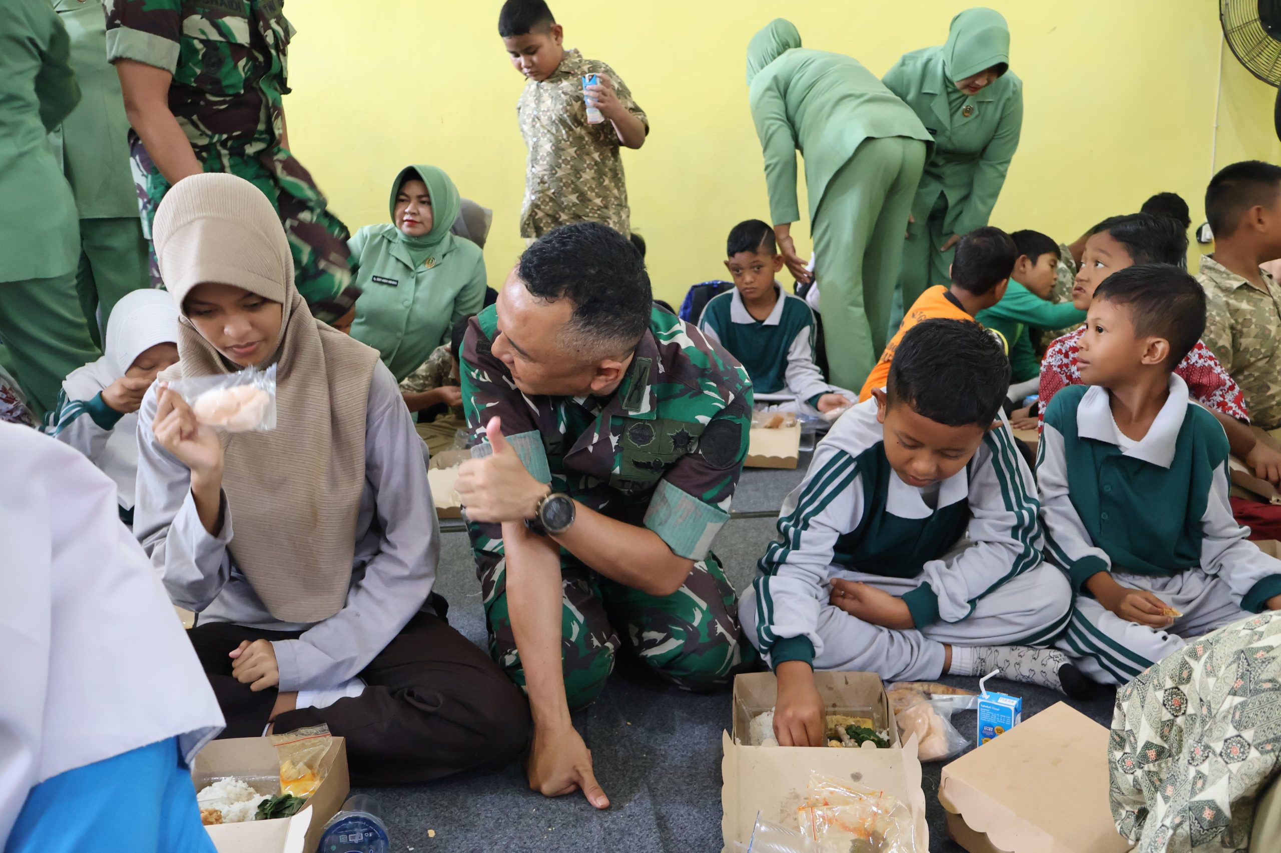 Kegiatan diakhiri dengan ramah tamah makan bersama, sebagai wujud kepedulian dan kasih sayang Dandim agar anak – anak tumbuh sehat dan kebutuhan gizinya tercukupi