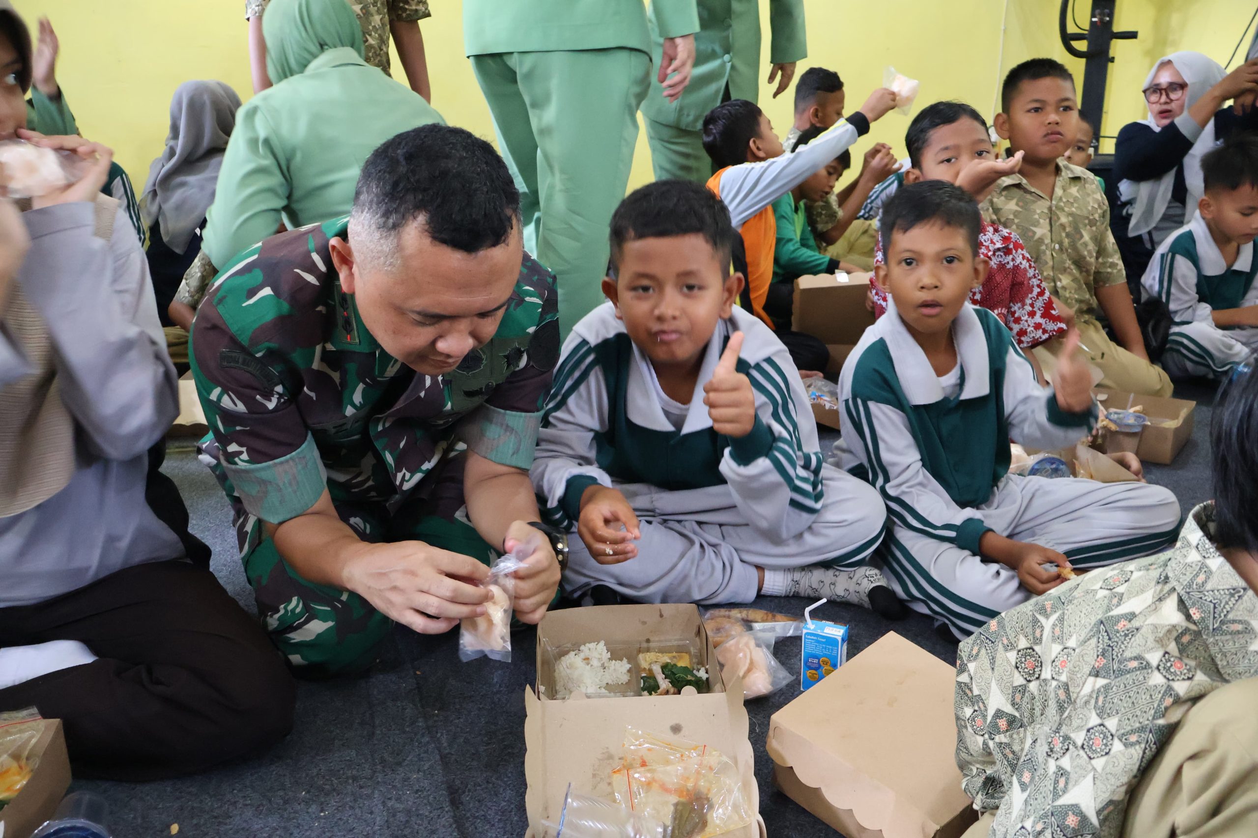 Kegiatan diakhiri dengan ramah tamah makan bersama, sebagai wujud kepedulian dan kasih sayang Dandim agar anak – anak tumbuh sehat dan kebutuhan gizinya tercukupi