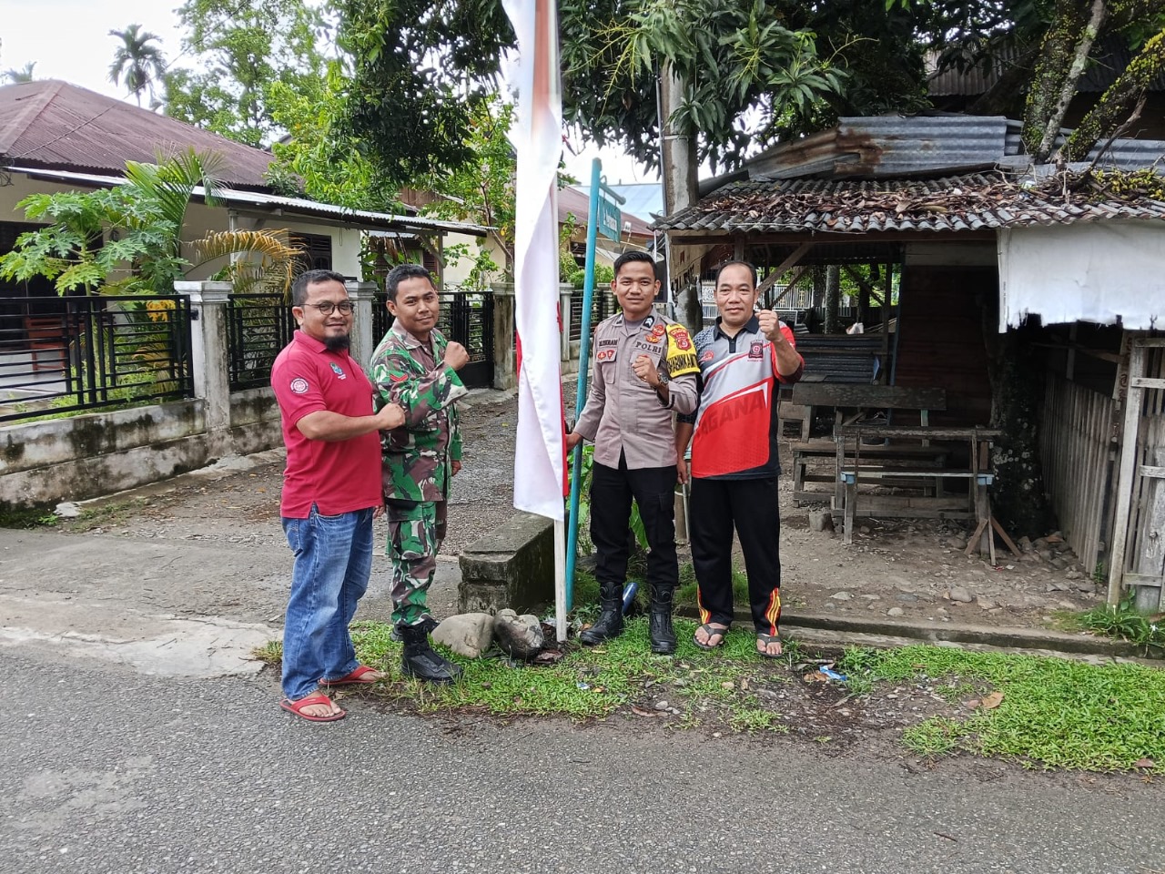 Dalam rangka menyambut Hari Ulang Tahun (HUT) ke-80 Republik Indonesia, Babinsa Koramil 04/Susoh Kodim 0110/Abdya Koptu Marzuki bersama sinergi Bhabinkamtibmas terus menggencarkan mendorong warga menyemarakkan lingkungan dengan nuansa merah putih, Selasa (12/8/2025).