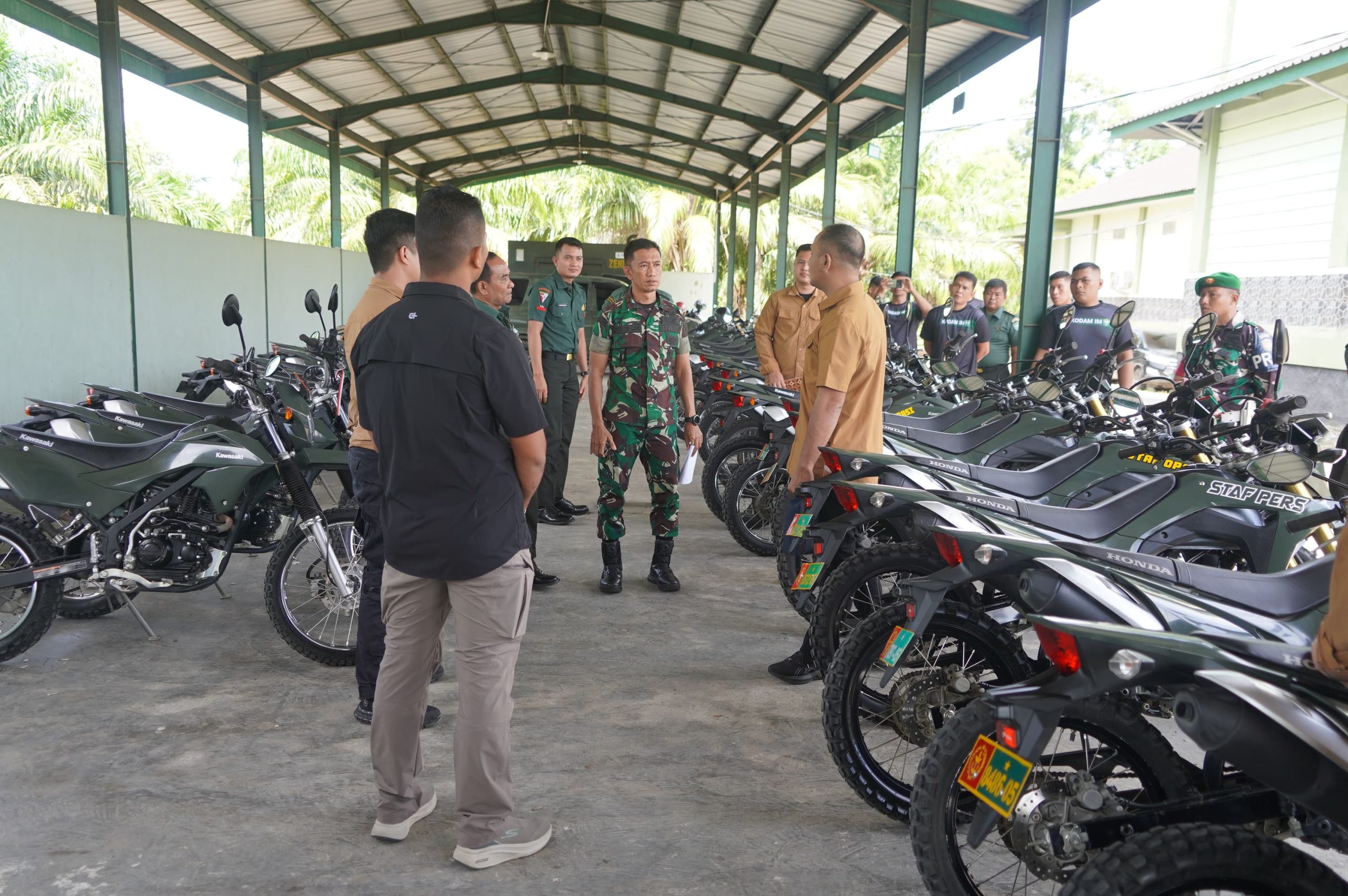 Aceh Barat, Seluruh prajurit Korem 012/Teuku Umar yang memegang kendaraan dinas roda dua maupun roda empat menjalani pemeriksaan kelengkapan surat dan kondisi fisik kendaraan oleh Staf Intelijen Kodam Iskandar Muda (Sinteldam IM). Kegiatan ini berlangsung di Makorem 012/TU, Selasa (22/07/2025), dipimpin oleh Pabandya Pam Sinteldam IM, Mayor Inf Arlin Juniaman Zai, S.Sos.