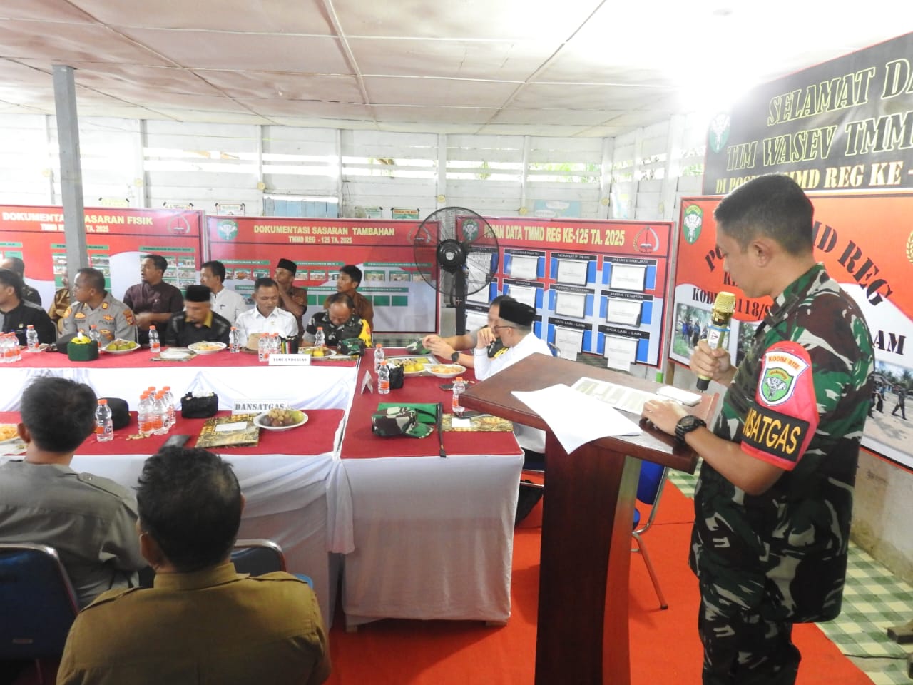 Sementara itu, Ketua Tim Wasev Kolonel Inf Budi Rahmawan menegaskan bahwa TMMD merupakan bagian dari operasi bhakti TNI yang dilaksanakan lintas sektor untuk mendukung percepatan pembangunan dan meningkatkan kesejahteraan masyarakat.