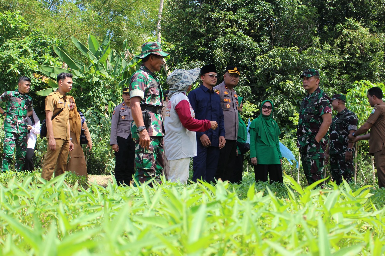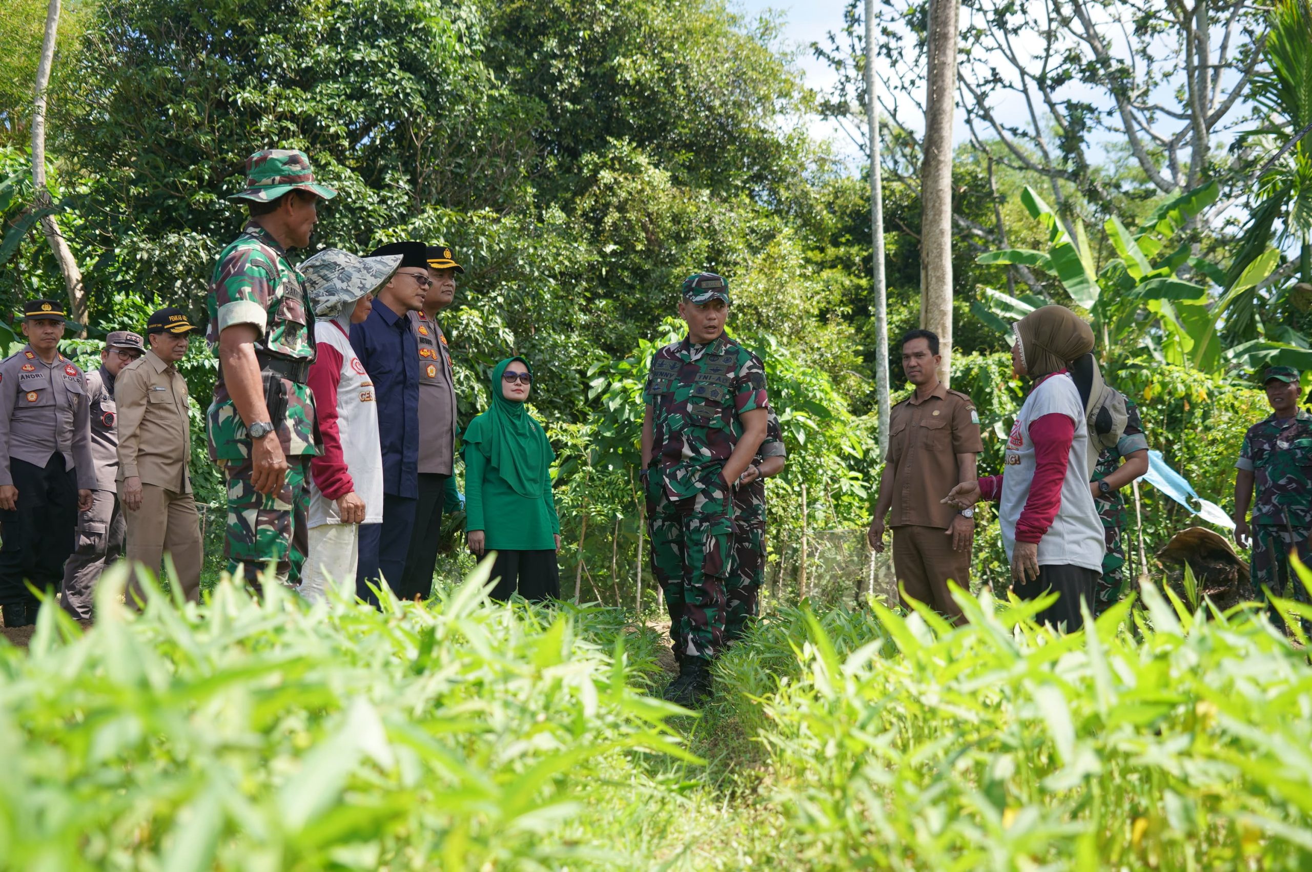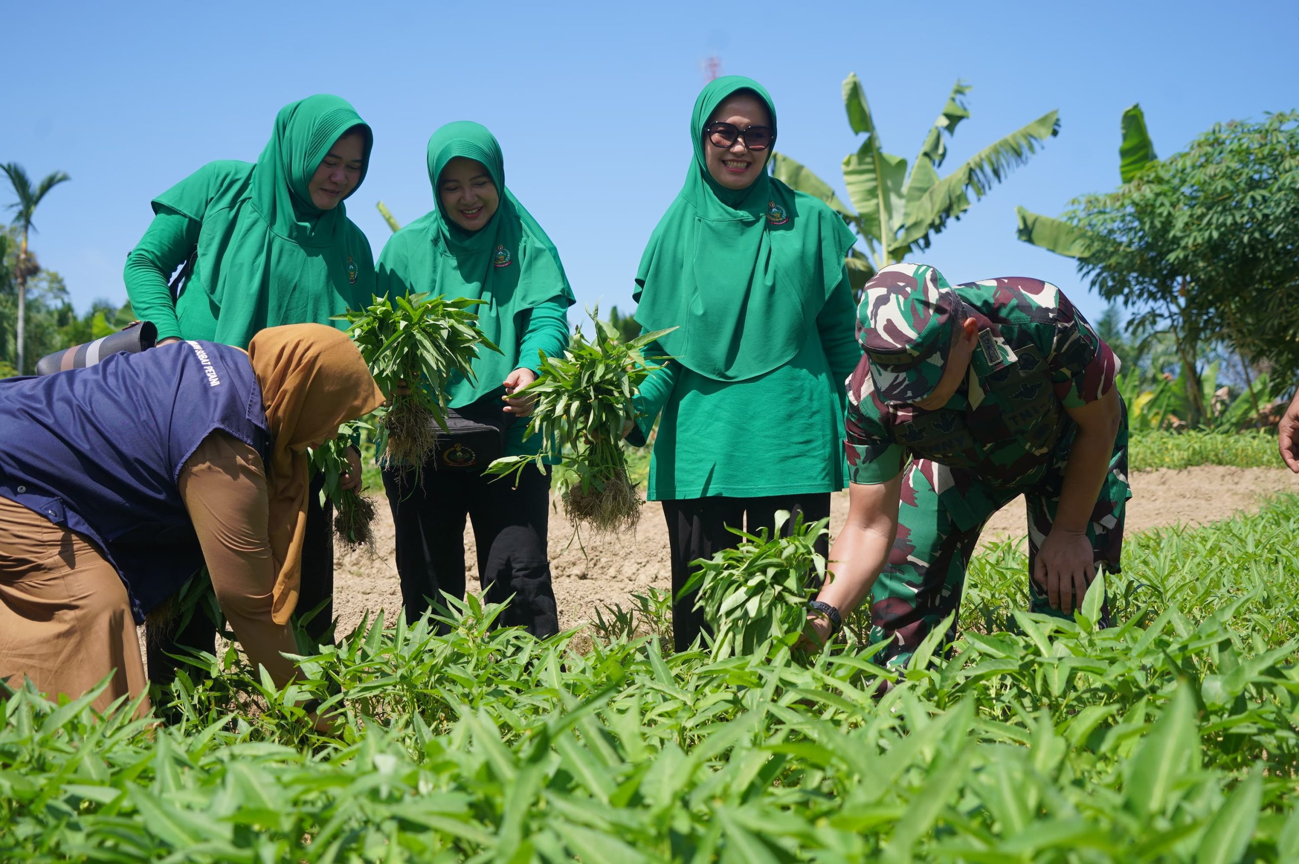 Didampingi Ketua Persit KCK Koorcab Rem 012, Ny. Rina Benny Rahadian, Danrem mengunjungi area budidaya sayuran, lahan jagung, serta kolam percontohan perikanan. Di lokasi budidaya sayuran, ia secara langsung memanen kangkung dan kacang panjang, sekaligus berdialog hangat dengan para petani setempat.
