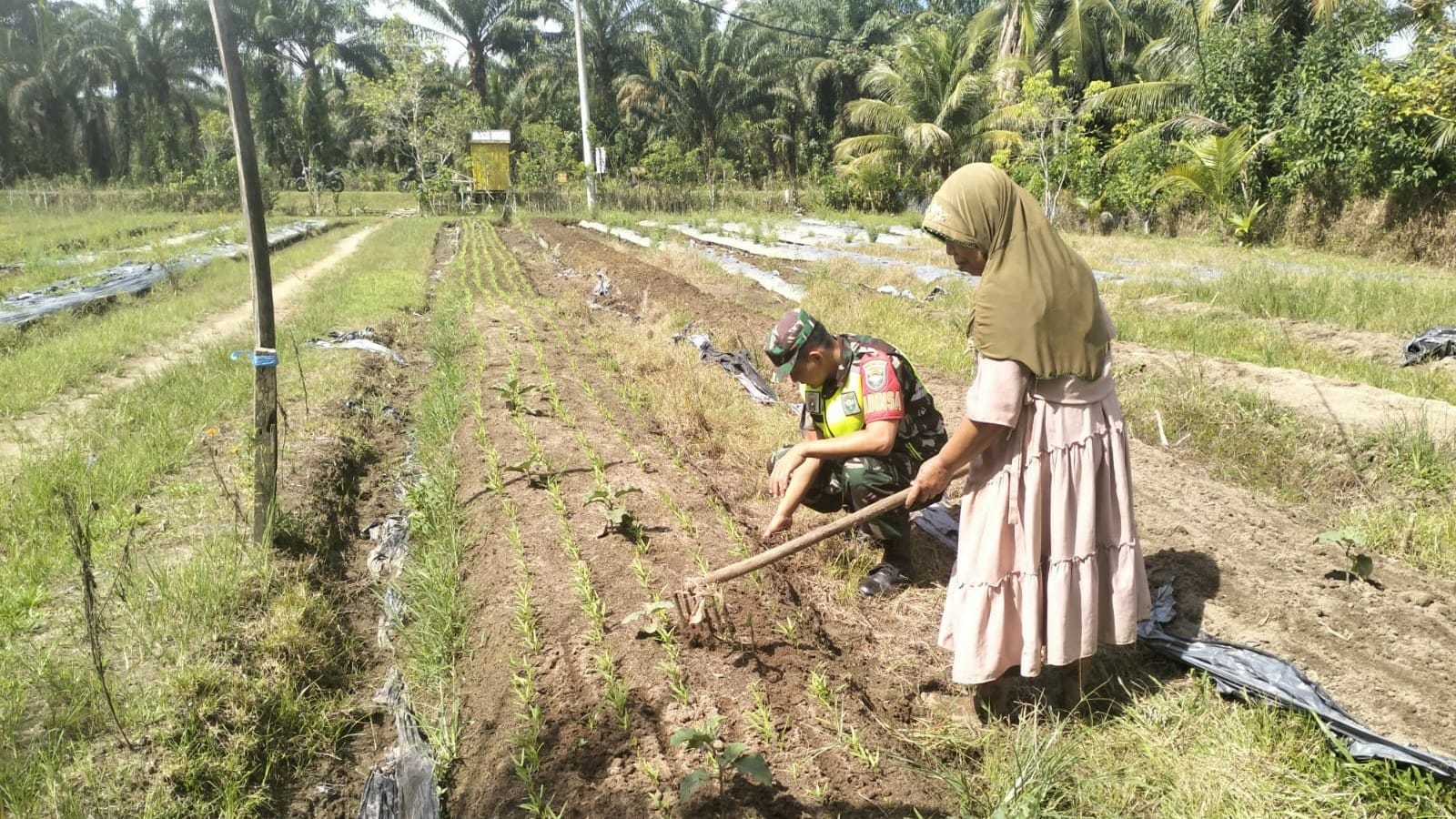 Topang Ketahanan Pangan, Babinsa Koramil 04/Meureubo Bantu Petani Bersihkan Gulma Rumput Liar Di Kebun Kangkung