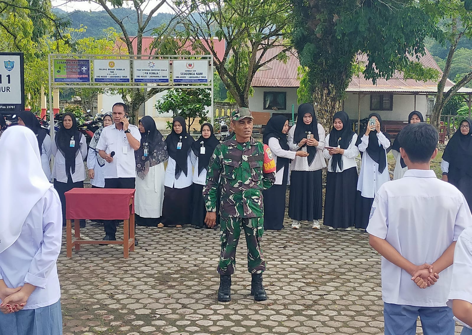 ACEH SELATAN – Dalam rangka Masa Pengenalan Lingkungan Sekolah (MPLS), Babinsa Koramil 12/Labuhanhaji Timur Kodim 0107/Aceh Selatan Serk Anwar turut ambil bagian dengan memberikan materi wawasan kebangsaan kepada para siswa baru di salah satu Sekolah Menengah Atas Negeri 1 (SMAN1) Kecamatan Labuhanhaji Timur, Rabu (16/7/2025).
